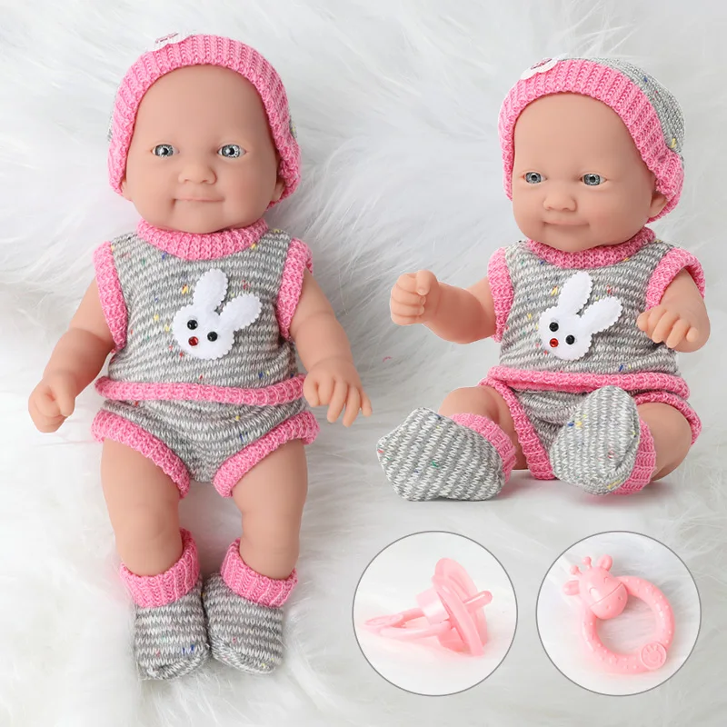 Get 10 inch bebe reborn doll 26CM simulation Realistic waterproof silicone newborn baby Hand bell clothes hat sock set for toy kids